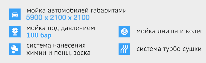 Размеры моечного бокса и тех помещения зависят от выбранной модели робота.